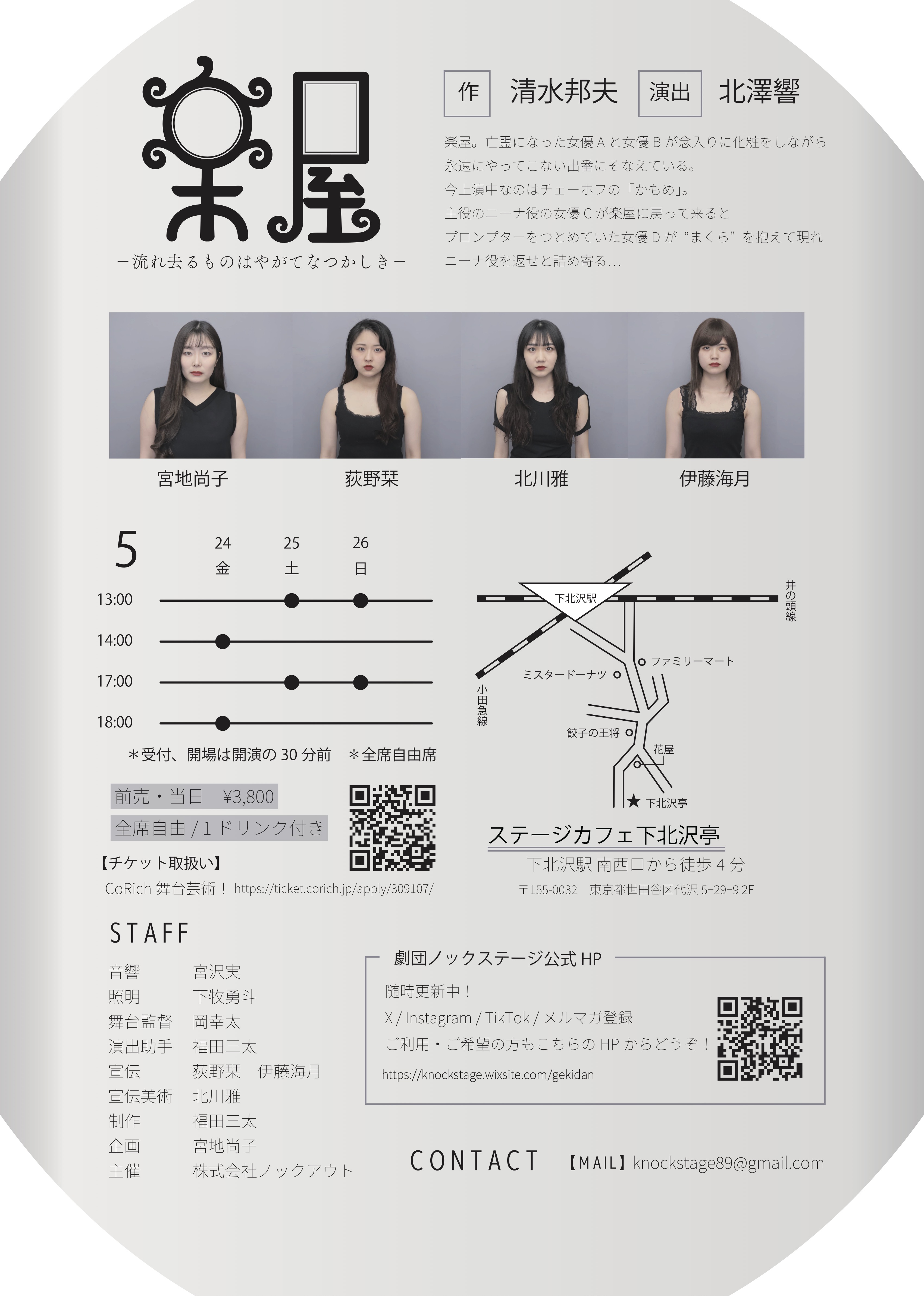 楽屋。亡霊になった女優Aと女優Bが念入りに化粧をしながら永遠にやってこない出番にそなえている。今上演中なのはチェーホフの「かもめ」。主役のニーナ役の女優Cが楽屋に戻って来るとプロンプターをつとめていた女優Dが“まくら” を抱えて現れニーナ役を返せと詰め寄る…